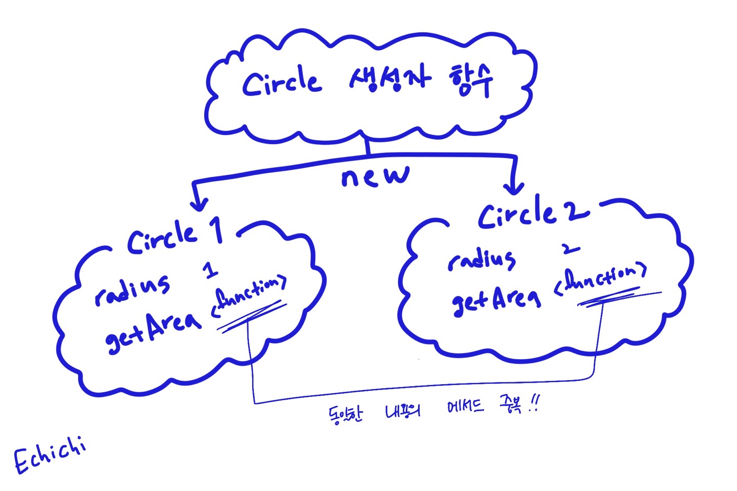 // Circle 생성자 함수는 인스턴스를 생성할 때마다 동일한 동작을 하는