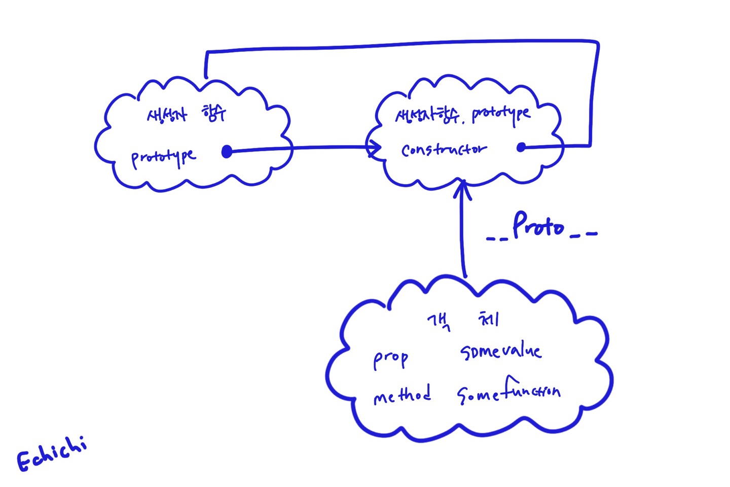 - 프로토타입 체인은 단방향 연결 리스트로 구현되어야 함 ( 프로퍼티 검색 방향이 한쪽 방향으로만 흘러가야함)