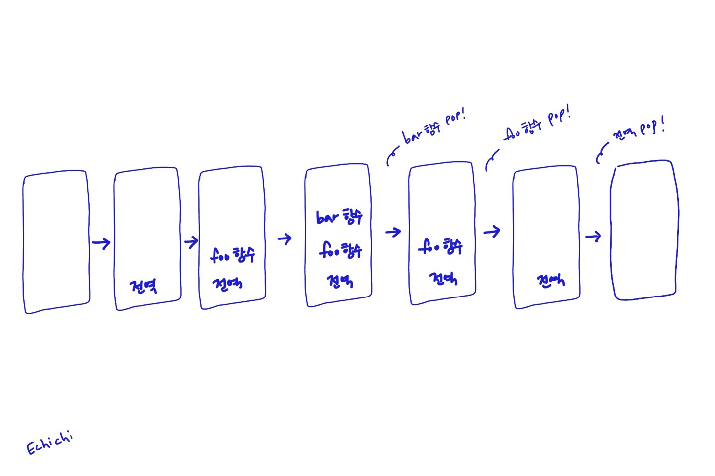- foo 함수 코드 실행은 일시중단, 코드 제어권이 bar 함수 내부로 이동